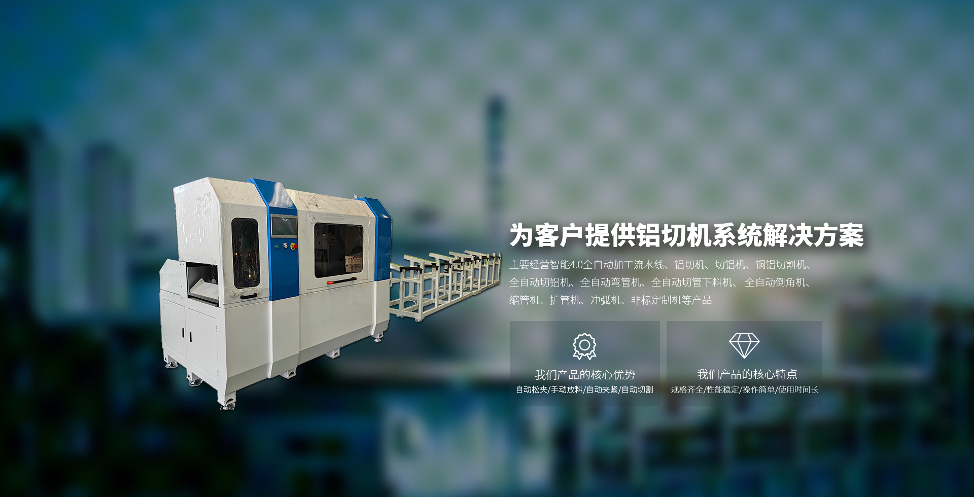 主要經(jīng)營智能4.0全自動加工流水線、鋁切機、切鋁機、銅鋁切割機、全自動切鋁機、全自動彎管機、全自動切管下料機、 全自動倒角機、縮管機、擴管機、沖弧機、非標定制機等產(chǎn)品